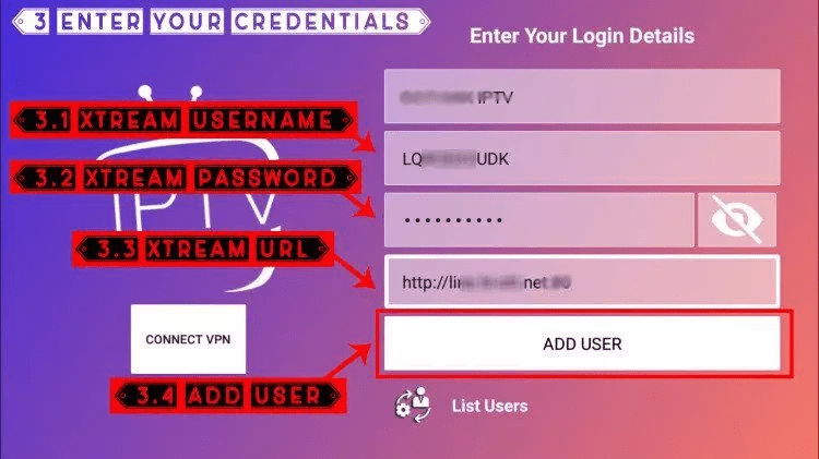 Step 3: Enter the login details that we have provided you after you get a subscription with us